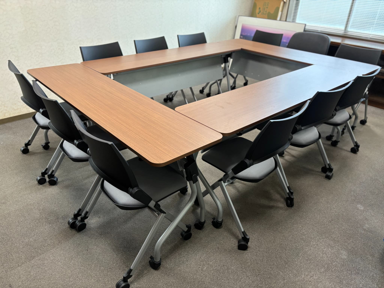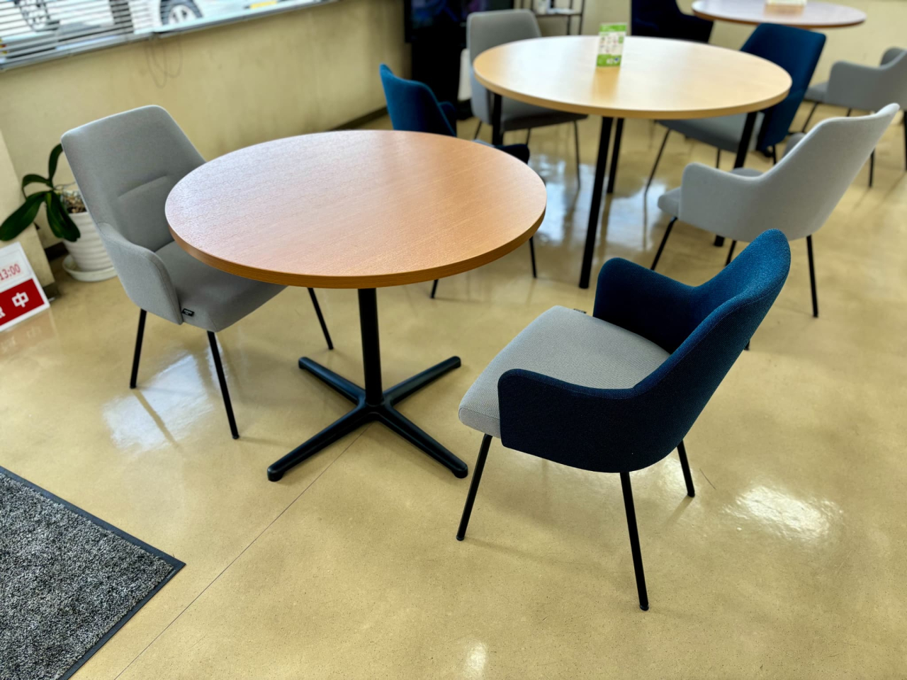▶待合室 家具が古くなってきたので、新しく入替たいとのご相談でした。 ▶休憩スペース 執務スペースの一角に休憩スペースを設置しました。出入口近くにあるため、ローパーテーションで外からの視線を遮りリラックスしていただけるようになりました。ファミレス席で背もたれが高く、執務スペースとの仕切りにもなっています。座面と背面のカラーは好きにお選びいただけるため、汚れが目立ちにくい濃いめのカラーにしました。 ▶会議室 応接室を従業員用の会議室にしたいとのことで、フォールディングテーブルを納品しました。チェアは座面をたたんで並行スタッキングが可能です。 |