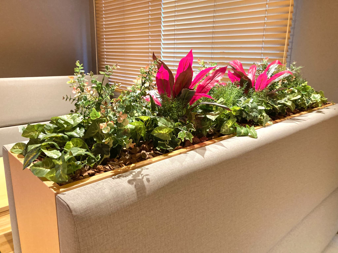 ▶待合室 家具が古くなってきたので、新しく入替たいとのご相談でした。 ▶休憩スペース 執務スペースの一角に休憩スペースを設置しました。出入口近くにあるため、ローパーテーションで外からの視線を遮りリラックスしていただけるようになりました。ファミレス席で背もたれが高く、執務スペースとの仕切りにもなっています。座面と背面のカラーは好きにお選びいただけるため、汚れが目立ちにくい濃いめのカラーにしました。 ▶会議室 応接室を従業員用の会議室にしたいとのことで、フォールディングテーブルを納品しました。チェアは座面をたたんで並行スタッキングが可能です。 |